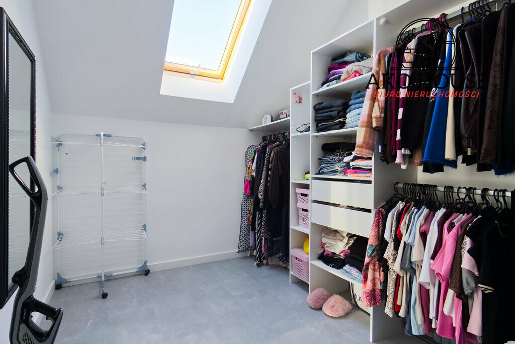 dużą garderobą z oknem daje poczucie przestrzeni i komfortu. Dwie