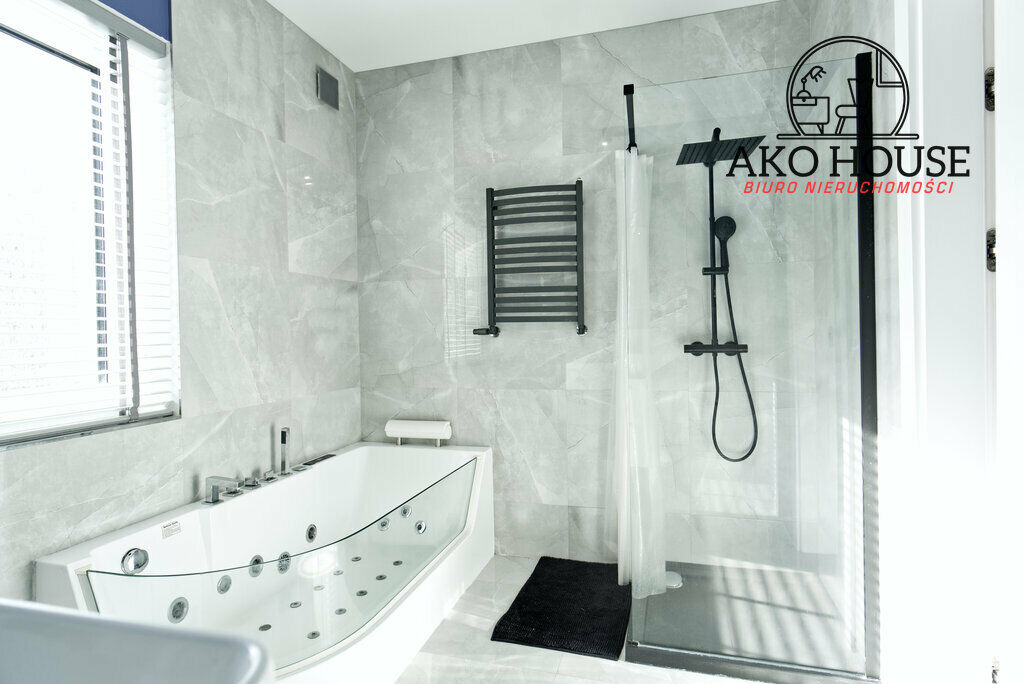 gabinetu lub pokoju gościnnego. Duża łazienka z wanną i prysznicem